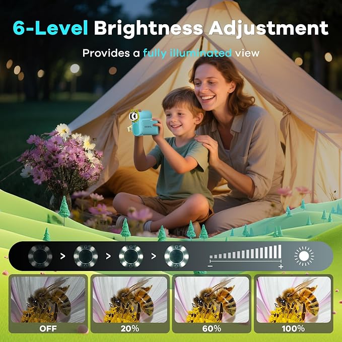 - 6-Level Brightness Control: Customize your view with adjustable LED lighting! This portable microscope for kids lets you perfect the illumination for any specimen - from translucent leaves to dark tiny living things. Explore in ideal light conditions every time